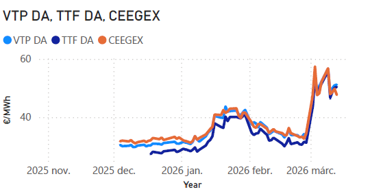 Eközben a tavasz közeledtével a megújuló energiaforrások is egyre nagyobb szerepet játszanak az árak alakulásában. A növekvő napenergia-termelés Németországban és Dél-Európában időnként mérsékelte a spot árak emelkedését, még a magas tüzelőanyag-árak mellett is. Emellett a vízenergia-helyzet a balkáni és északi régiókban, valamint a széltermelés alakulása is jelentős hatással van a napi ármozgásokra.